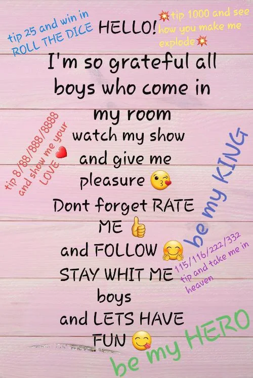 My room is not only a place where you can have sexual pleasure, but also enjoy a pleasant conversation and good advice. Your support and love make my dreams come true, and for that I THANK YOU❤